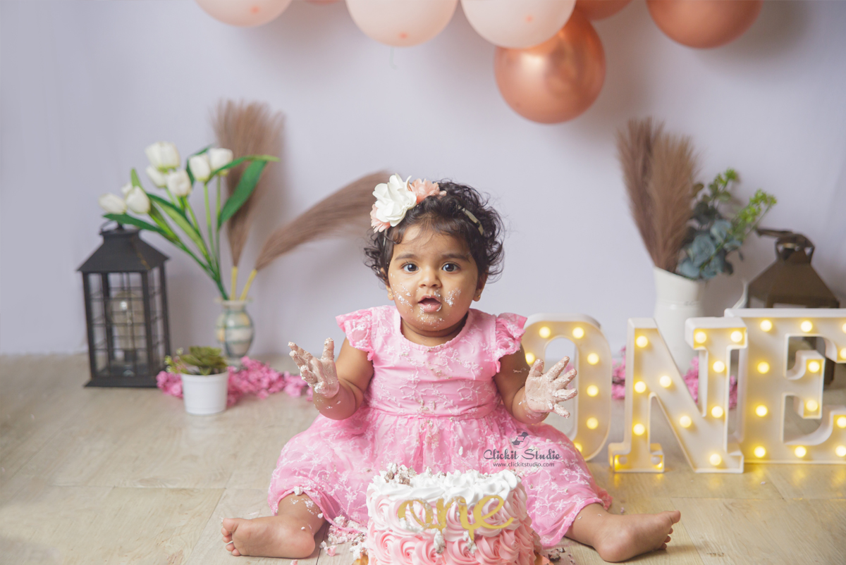 A fun photography session where your little one enjoys their first cake, making sweet memories filled with laughter and mess!